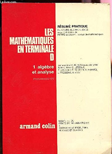 R320016953. LES MATHEMATIQUES EN TERMINALE D / TOME 1 - ALGEBRE ET ANALYSE - PROGRAMMES 1972 / COLLECTION RESUME PRATIQUE DU COURS AUX PROBLEMES / 2è EDITION.. 1972. In-4. Broché. Etat d'usage, Couv. convenable, Dos satisfaisant, Intérieur acceptable. 143 pages illustrées de nombreuses figures dnas le texte.. . . . Classification Dewey : 372.7-Livre scolaire : mathématiques